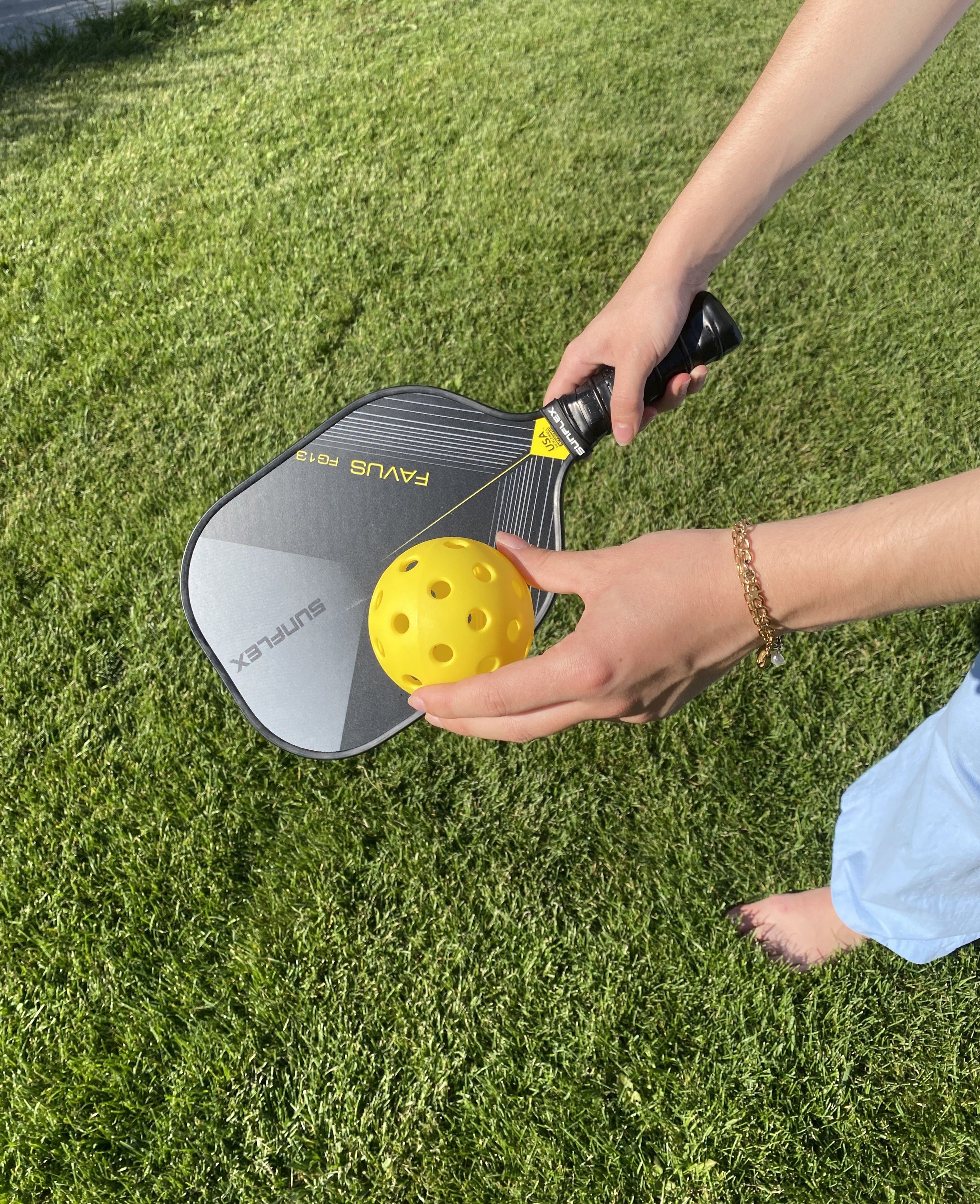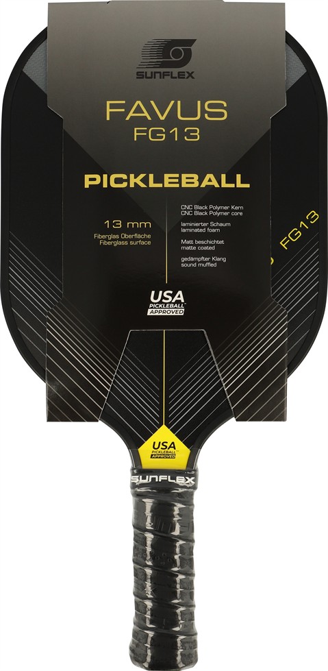 Der sunflex PICKLEBALL SCHLÄGER FAVUS FG13 ist geeignet für angehende Profispieler. Die einzigartige mit Glasfaser überzogene Schlägerkopf erzeugt weniger Luftwiderstand und erhöht die Schwunggeschwindigkeit. Spezieller Schaum, der in die Umrandung des Schlägers eingespritzt wird, erhöht das Gewicht und die Stabilität und erhöht den Sweet Spot für eine konsistente Leistung von Kante zu Kante. Die Polymerwabenstruktur (CNC Black Polymer) im inneren des Schlägers hilft die Konsistenz des Aufprall und das Gefühl zu maximieren, das für jeden Schlag erforderlich ist. Der schaumgefüllte Griff erhöht die maximale Dämpfung für zusätzliche Beweglichkeit und Komfort. Der perforierte Anti-Rutsch-Randgriff schafft eine optimale Halteleistung und erhöhte Stoßdämpfung. Ideal für Schläge mit zwei Händen. In Kartonverpackung.
