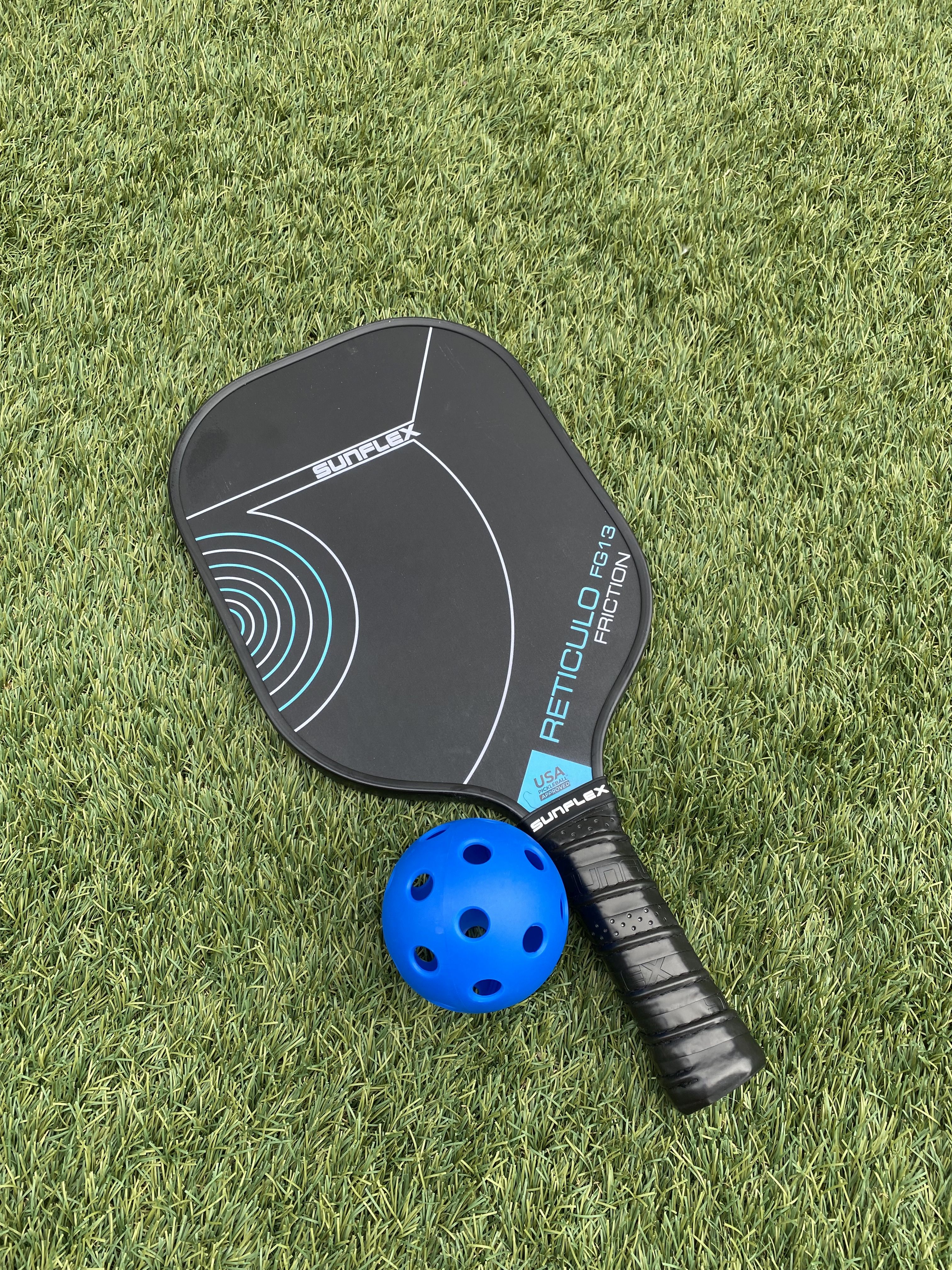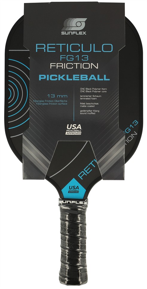 Der sunflex PICKLEBALL SCHLÄGER RETICULO FG13 FRICTION ist geeignet für fortgeschrittene Profispieler. Die einzigartige mit Glasfaser überzogene Schlägerkopf erzeugt weniger Luftwiderstand und erhöht die Schwunggeschwindigkeit. Spezieller Schaum, der in die Umrandung des Schlägers eingespritzt wird, erhöht das Gewicht und die Stabilität und erhöht den Sweet Spot für eine konsistente Leistung von Kante zu Kante. Der sunflex PICKLEBALL SCHLÄGER FRETICULO FG13 FRICTION verfügt über eine Fiberglass-Friction-Oberflächen- Technologie (FFS) eine fortschrittlichere, haltbarere, langlebigere Oberfläche mit Glasfaserstruktur, die pure Kraft nutzt und gleichzeitig maximalen Spin bietet. Die Polymerwabenstruktur (CNC Polymer) im inneren des Schlägers hilft die Konsistenz des Aufprall und das Gefühl zu maximieren, das für jeden Schlag erforderlich ist. Der schaumgefüllte Griff erhöht die maximale Dämpfung für zusätzliche Beweglichkeit und Komfort. Der perforierte Anti-Rutsch-Randgriff schafft eine optimale Halteleistung und erhöhte Stoßdämpfung. Ideal für Schläge mit zwei Händen. In Kartonverpackung.