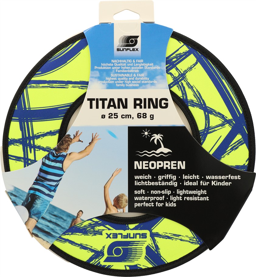 Der sunflex Titan Ring FUNKY CROSSED ist faltbar aufgrund des flexiblen Vinylmaterials. Der Flugring behält auch bei Gegenwind eine stabile Flugbahn, ist aber trotzdem angenehm und leicht zu fangen und zudem durch das Material faltbar. In Kartonverpackung.