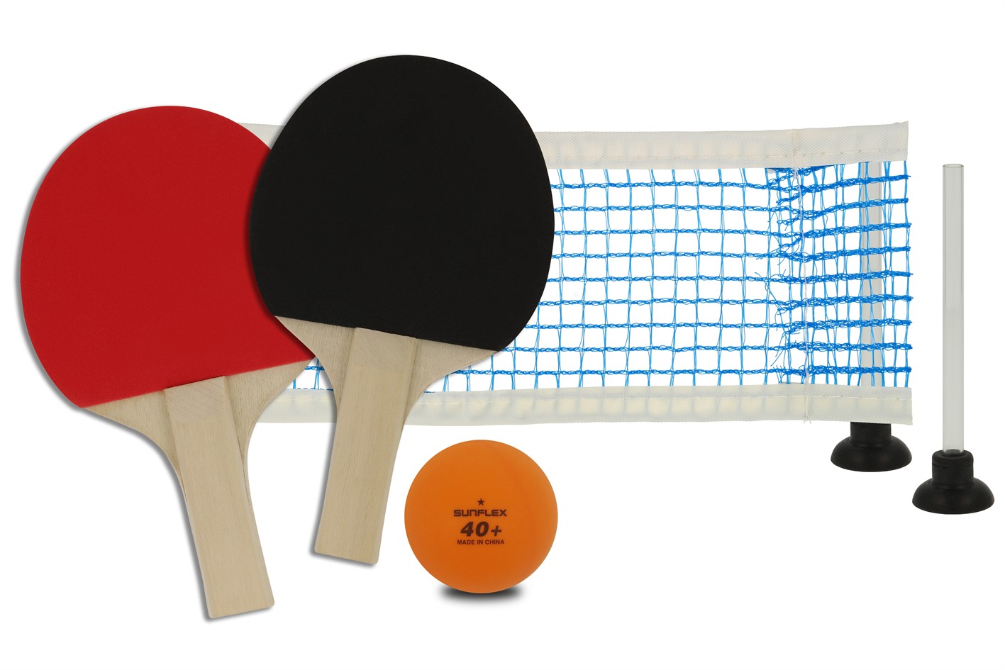 Erleben Sie den Nervenkitzel von Tischtennis, wo immer Sie sind, mit dem sunflex TISCHTENNIS-SET MINI! Das Set besteht aus zwei Mini-Tischtennisschlägern aus Holz mit Belägen in rot und schwarz, einem TT-Ball und einem Netz. Durch das Netz, welches mit Saugnäpfen leicht an nahezu jeder glatten Oberfläche befestigt werden kann, kann man sofort loslegen – kein komplizierter Aufbau erforderlich! Das Netz kann mühelos abgebaut und verstaut werden, wenn das Spiel vorbei ist. In Kartonverpackung.