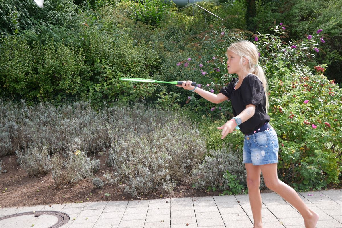Der kinderleichte Einstieg in Badminton gelingt mit dem sunflex JUMBO BADMINTON SET. Dieses umfasst zwei blaue Schläger, die mit einem weichen Griff und Rand für ein sicheres Spielen ohne Verletzungsgefahr sorgen. Die vergrößerte Schlagfläche erleichtert Kindern ab 5 Jahren das Treffen der Bälle. In dem Set ist nicht nur ein herkömmlicher Federball enthalten, sondern auch ein Schaumstoffball. Dieser fliegt langsamer durch die Luft und hilft Kindern beim Lernen des Badmintonspiels. In Kartonverpackung.