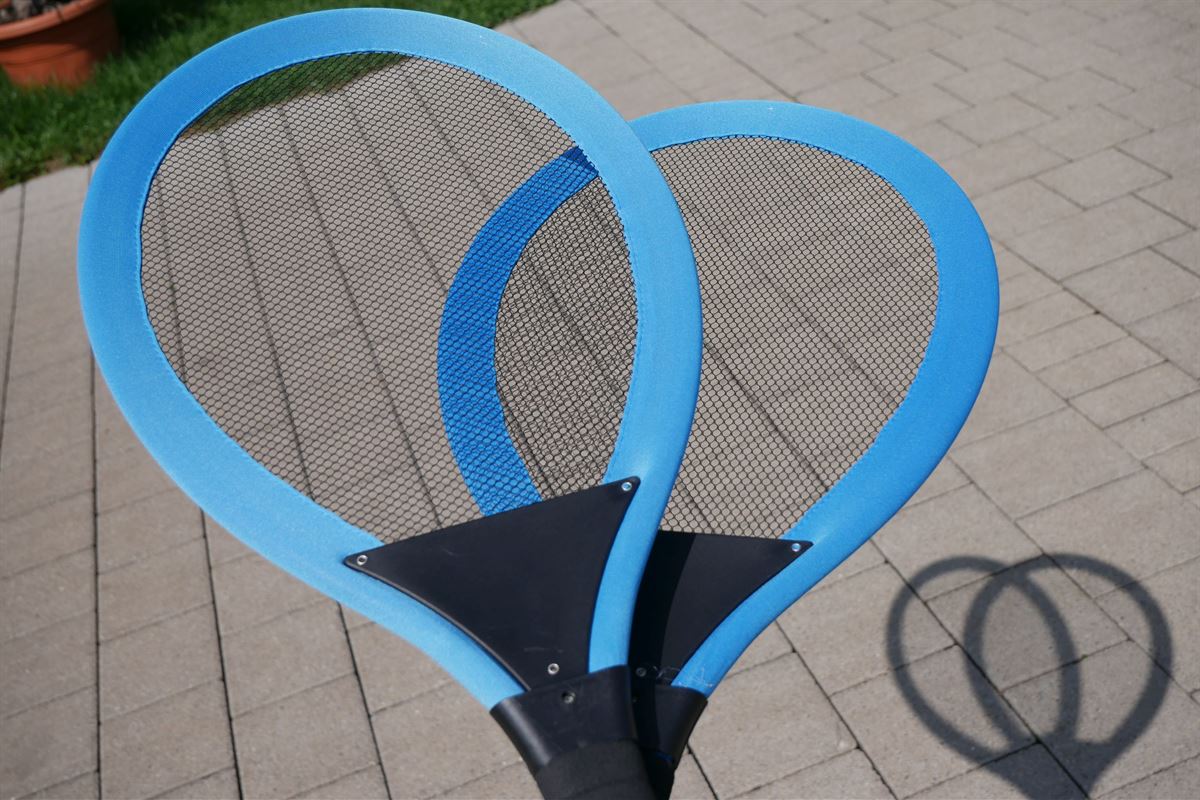 Das sunflex RACKET SET SUPERIOR besteht aus zwei hochwertigen Schlägern in verschiedenen Farben sowie einem Ball. Die Schläger sind mit einem speziellen Schaumstoffgriff ausgestattet, der für optimalen Halt und hohen Komfort sorgt, selbst bei intensiven Ballwechseln. Dank der innovativen Lochstruktur auf der Schlägerfläche kann der Druck des aufprallenden Balls perfekt ausgeglichen werden – das verbessert die Kontrolle und reduziert gleichzeitig den Widerstand. So wird jedes Spiel präziser und angenehmer. In Kartonverpackung.