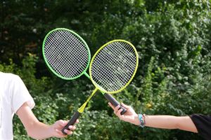 The high quality sunflex badminton set MATCHMAKER JUNIOR consists of 2 rackets with shorter shaft, 2 shuttlecocks and nylon carrybag.