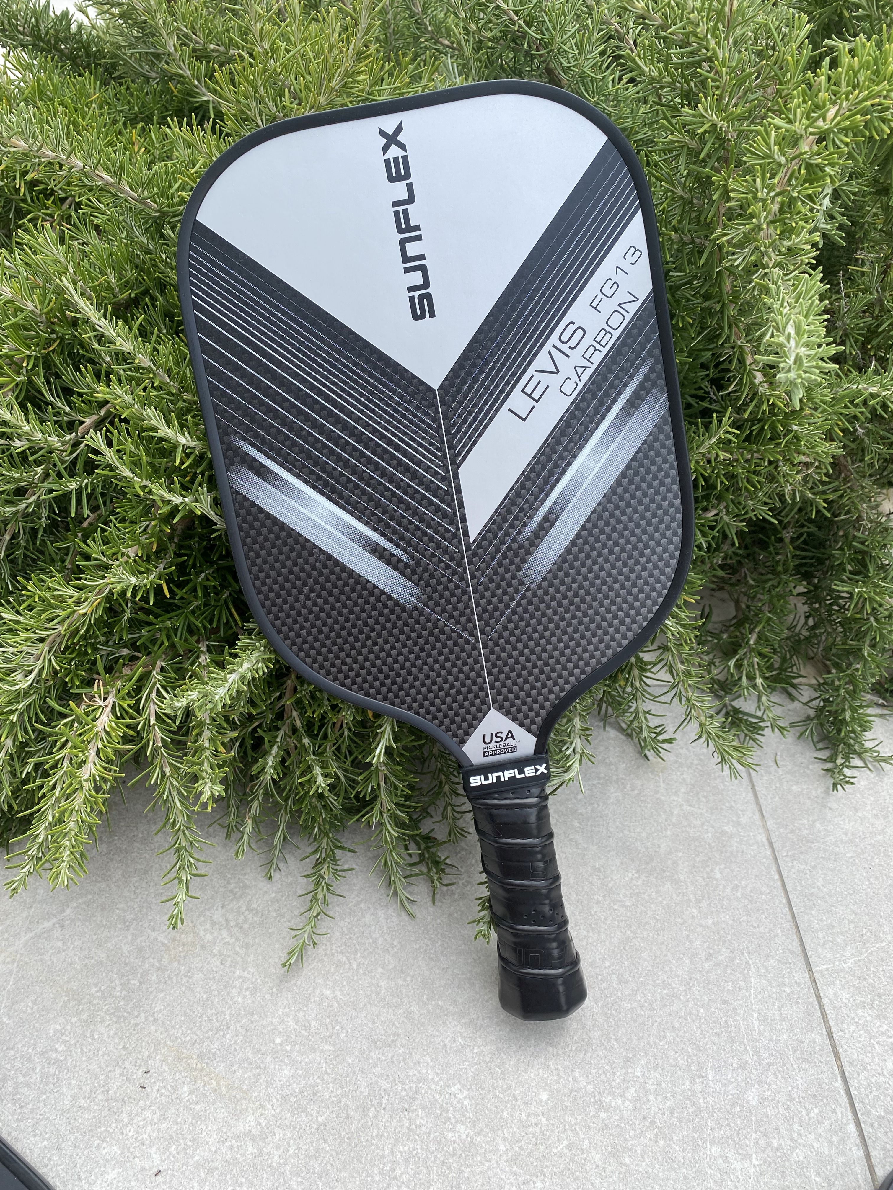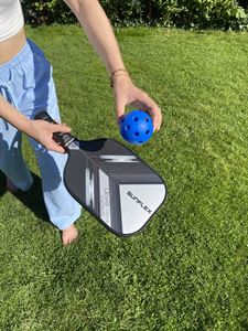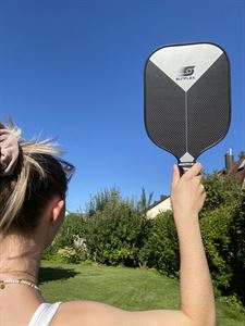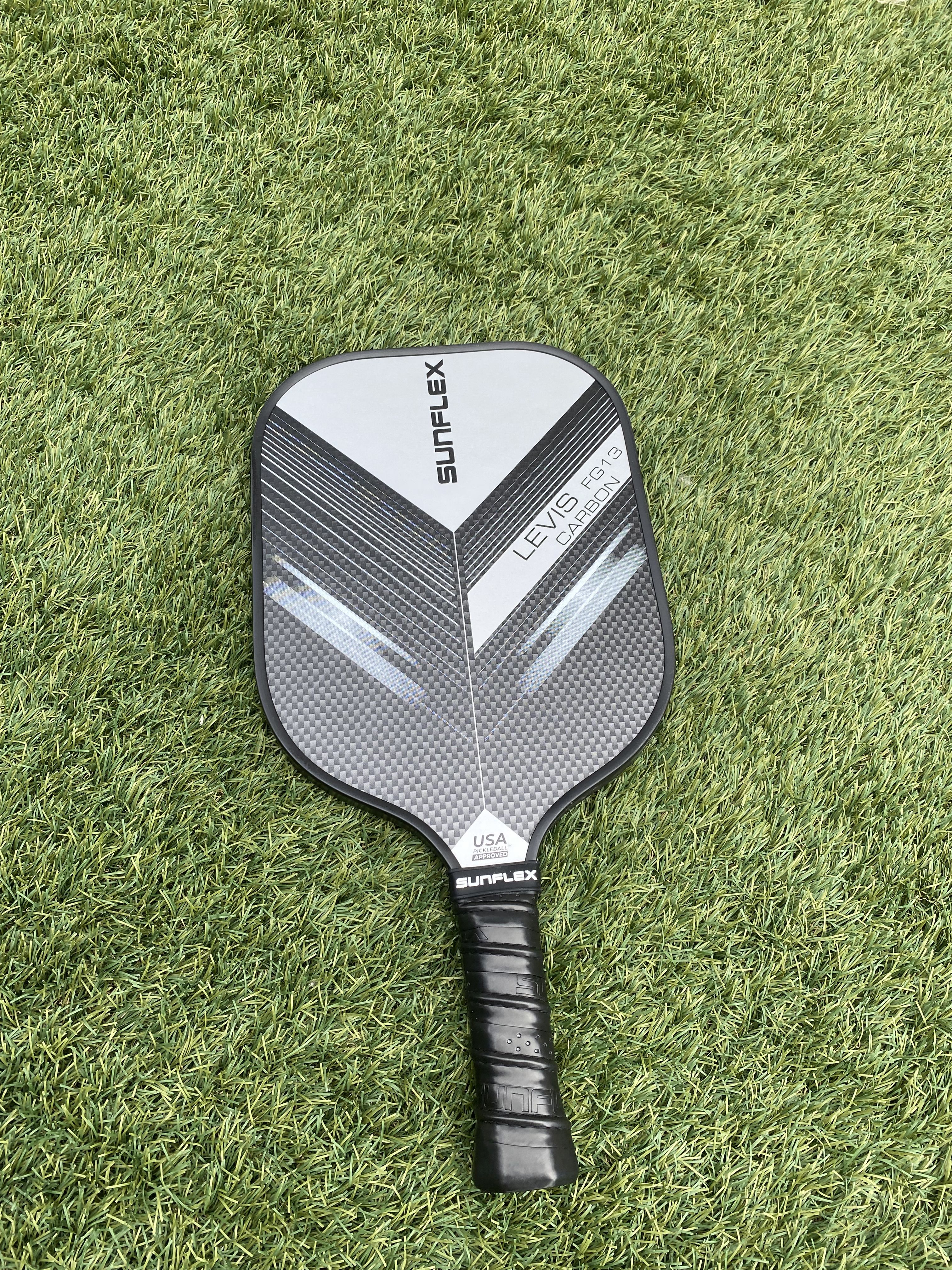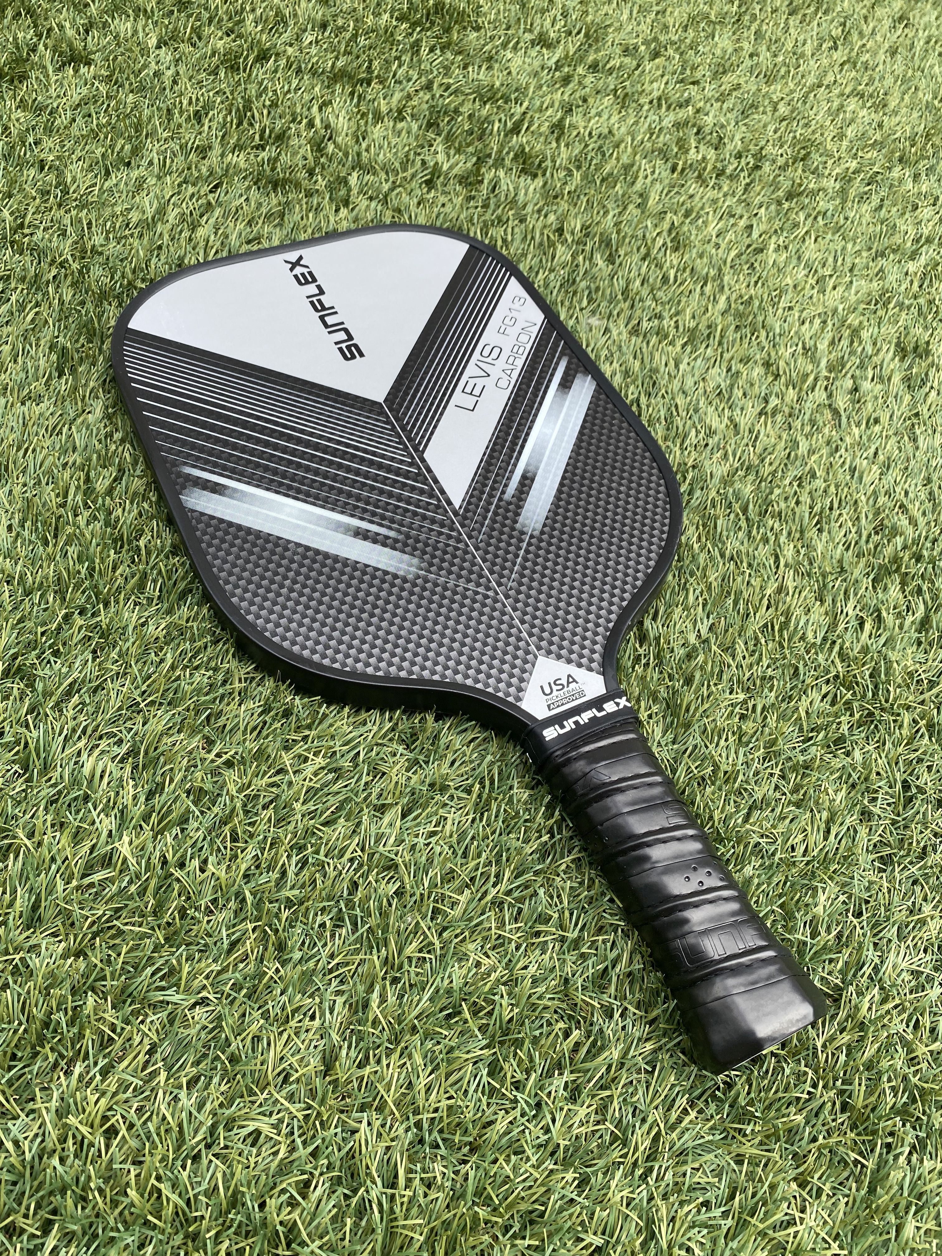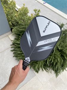 The sunflex PICKLEBALL RACKET LEVIS FG13 CARBON is suitable for advanced professional players. The unique racquet head covered with 50% glass fiber and 50% carbon generates less air resistance and increases swing speed. Special foam, which is injected into the frame of the racquet, increases the weight and increases stability and increases the sweet spot for consistent edge-to-edge performance.The carbon-fiberglass coating provides maximum surface tension on return while minimizing carbon weight. The polymer honeycomb (CNC Polymer) structure inside the racquet helps maximize the consistency of impact and feel required for every shot. Foam-filled grip increases maximum cushioning for added mobility and comfort. The perforated anti-slip rim grip creates optimal holding power and increased shock absorption. Ideal for hitting with two hands. In cardboard packaging.