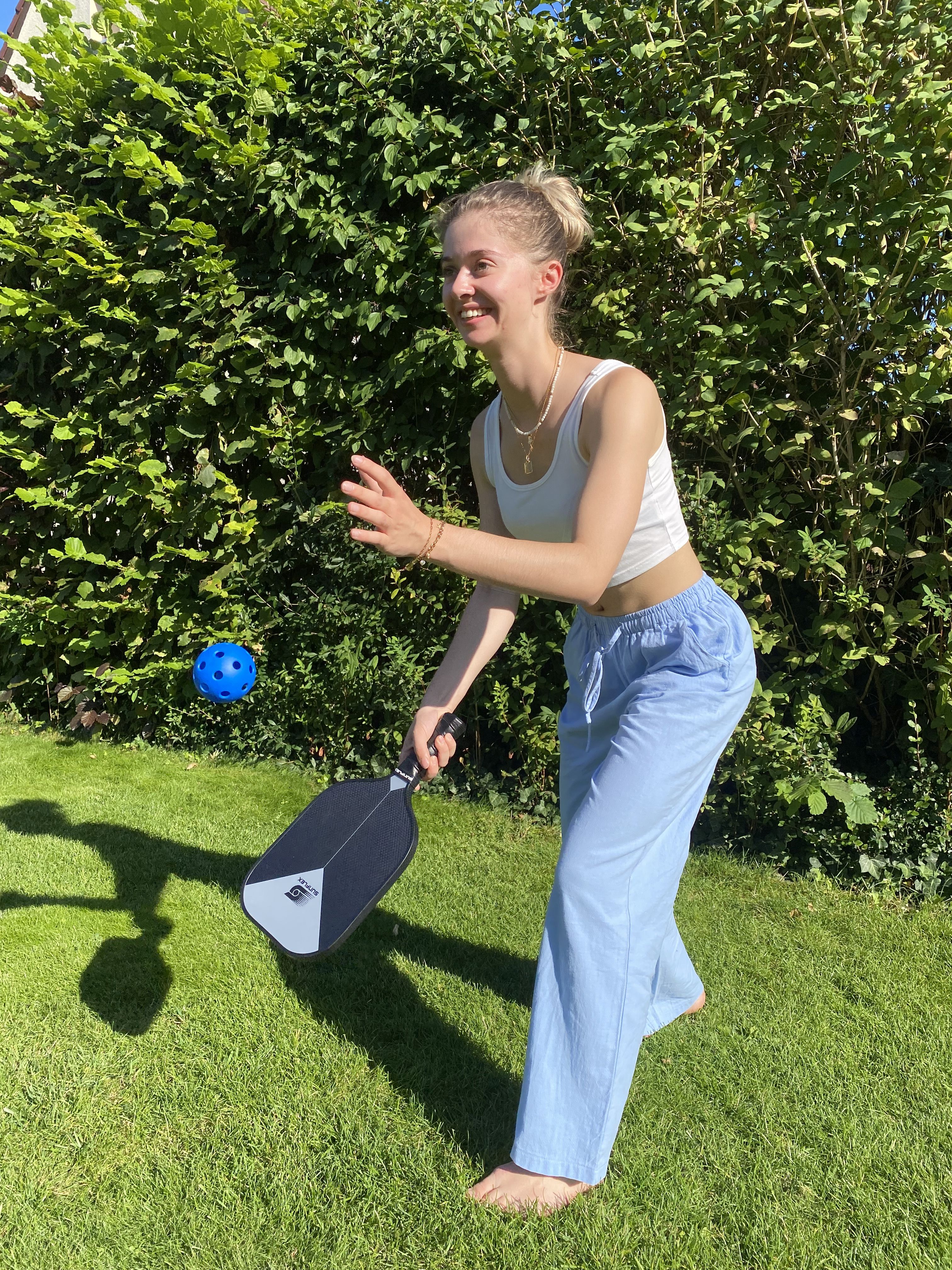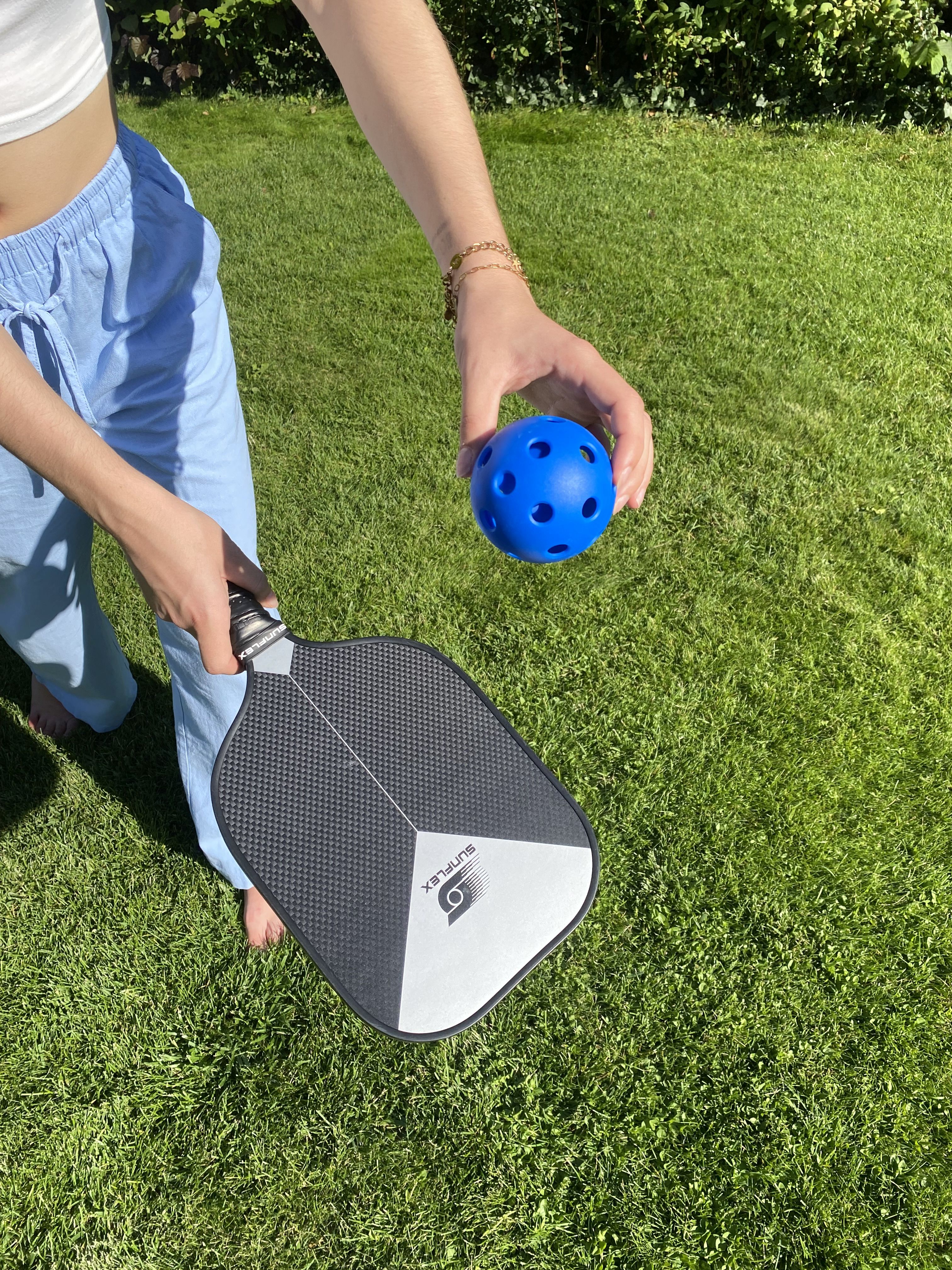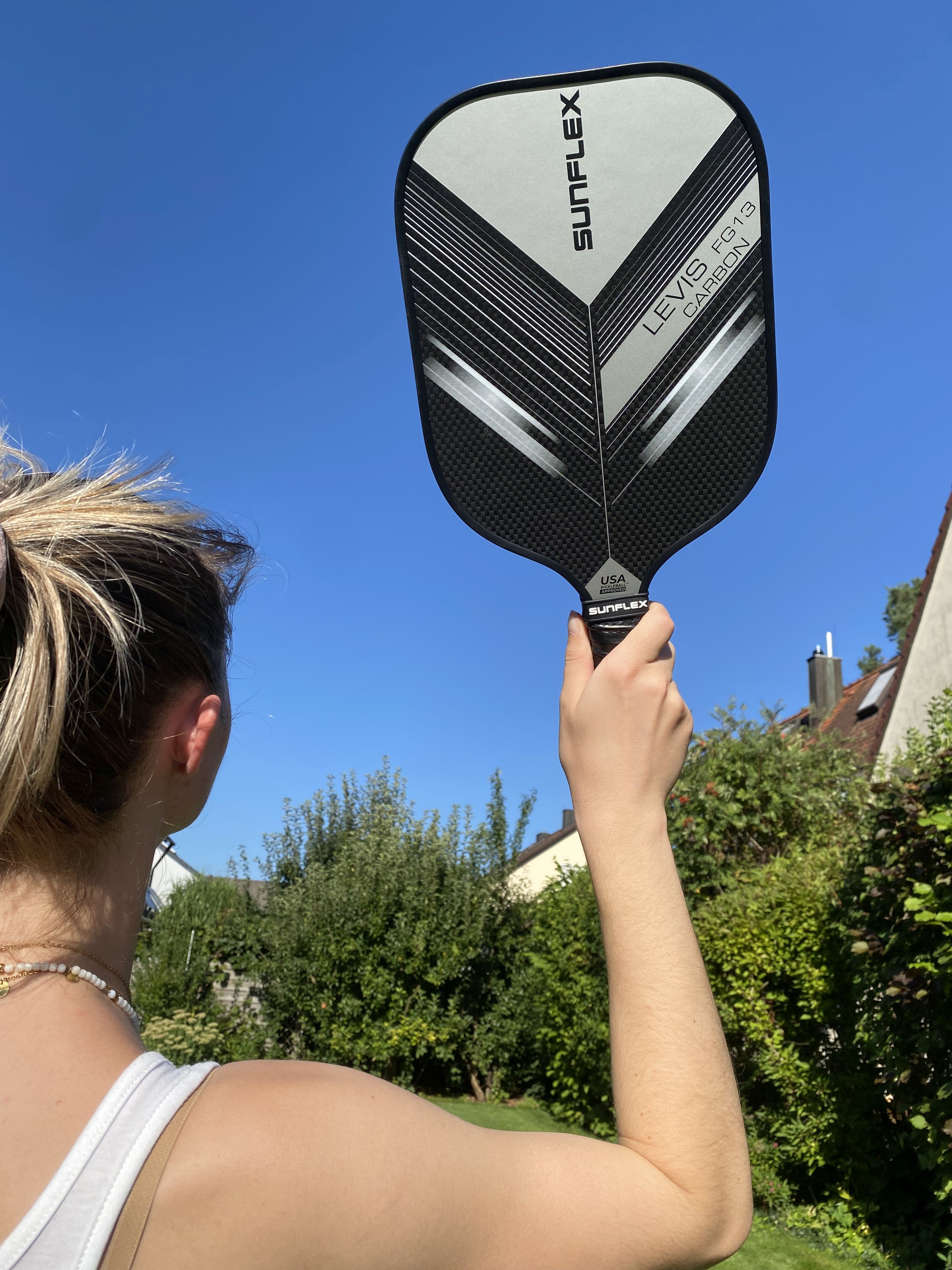 The sunflex PICKLEBALL RACKET LEVIS FG13 CARBON is suitable for advanced professional players. The unique racquet head covered with 50% glass fiber and 50% carbon generates less air resistance and increases swing speed. Special foam, which is injected into the frame of the racquet, increases the weight and increases stability and increases the sweet spot for consistent edge-to-edge performance.The carbon-fiberglass coating provides maximum surface tension on return while minimizing carbon weight. The polymer honeycomb (CNC Polymer) structure inside the racquet helps maximize the consistency of impact and feel required for every shot. Foam-filled grip increases maximum cushioning for added mobility and comfort. The perforated anti-slip rim grip creates optimal holding power and increased shock absorption. Ideal for hitting with two hands. In cardboard packaging.