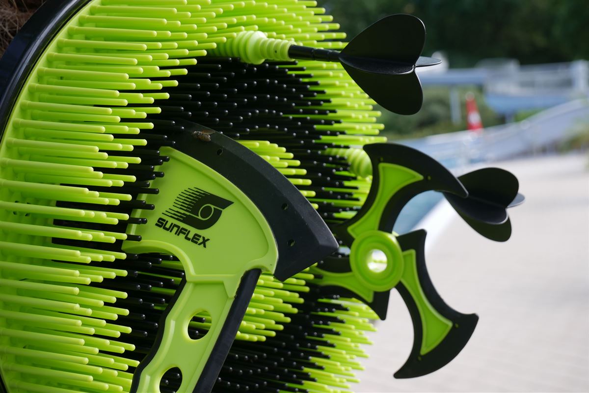 The sunflex POCKET FLING REPLACEMENT DARTS are made of foam and equipped with a real rubber suction cup at the front end. In polybag with two arrows each.